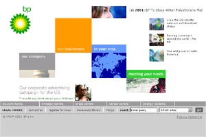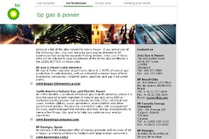 clicks to a sales contact 'Transition Pages' provide access to BP business sites and country portals and introduce customers directly to sales contacts. Flexibility in the right places Broad guidelines for business sites set forth global standards, yet encourage 'flexibility in the right places'. The objective is to inspire innovation, yet within constraints that refer back to a common look and feel. |